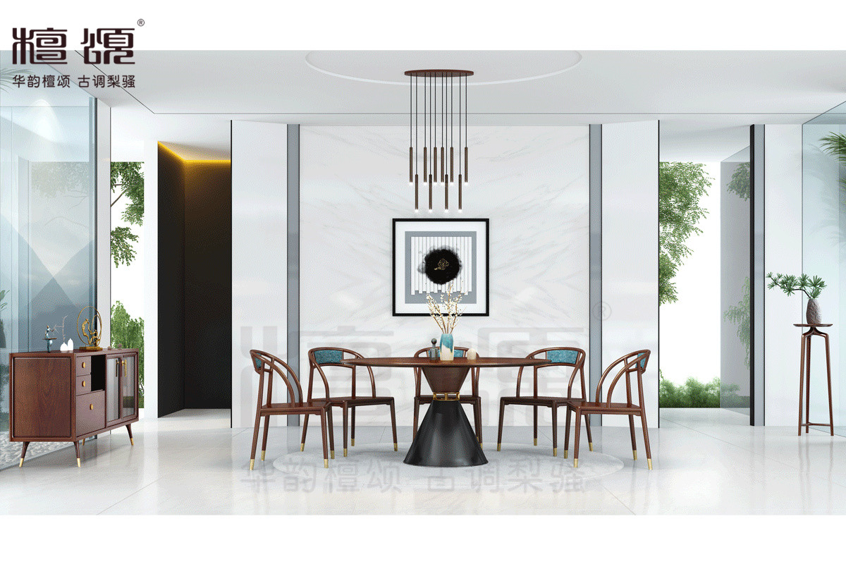 產(chǎn)品組合:1.5M圓餐桌+6餐椅+餐邊柜